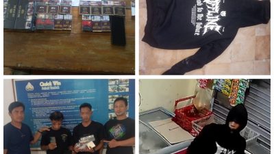 “Dari tangan para pelaku, kami amankan sejumlah barang bukti berupa rokok berbagai merek, uang tunai Rp39.000, satu unit handphone, serta jaket hoodie hitam bertuliskan ‘OFFLINE’ yang digunakan saat beraksi,” jelas Iptu Mustofah.